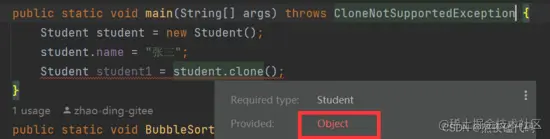 我们在底层发现,clone()方法是protected修饰的,不同包只能通过子类super.调用,所以我们在Student必须重写这个方法.