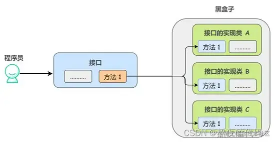 接口就是公共的行为规范标准,大家在实现时,只要符合规范标准,就可以通用。