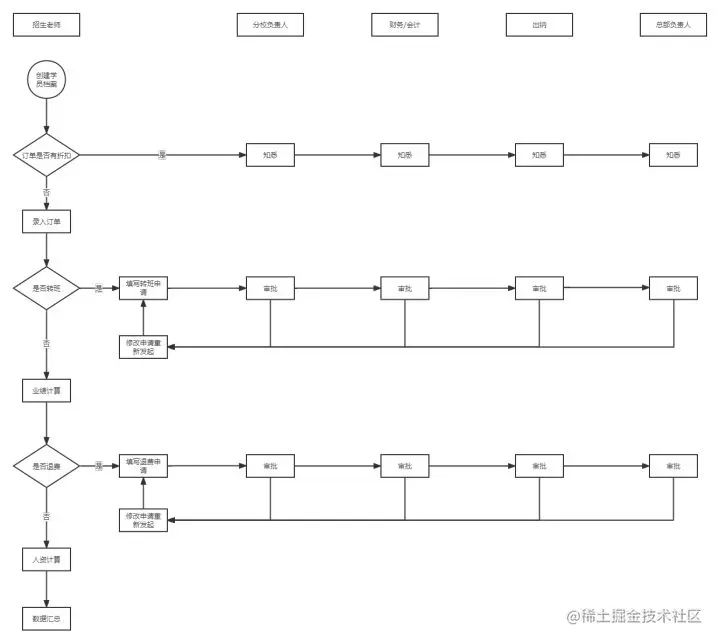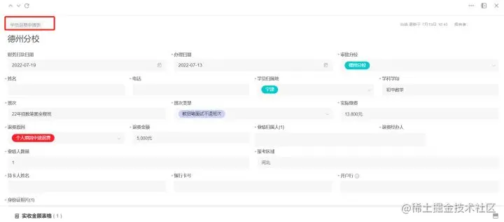 退费资料填写与审批流程的运转效率也相较于以前有了显著变化。招生老师点击按钮发起退费资料填写,学员填写完成后,系统自动在学员退费申请表新增退费信息,并自动发起一条退费审批。各部门审批完成后,系统自动计算退费金额和退费业绩金额。