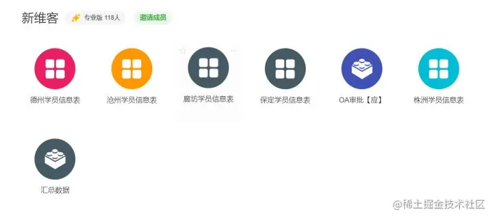 在新维客里,不同地市的校区都有各自的应用,同地市内的县级分校同用一个应用。同校区的员工可以在平台上实时协作,处理业务,不再靠用Excel表来来回回地修改。重复固定的工作可以交给工作流处理,比如数据汇总、增删改查。
