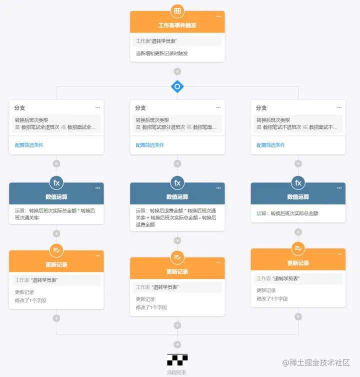 新学员预估收入和退转预估费用计算非常复杂,容易出错。新维客使用工作流自动秒级计算,结果零误差。
