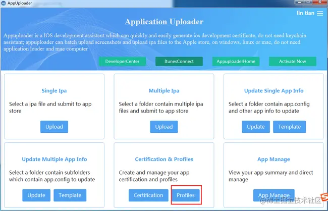 三、申请ios描述文件(mobileprovision) 1、返回软件,选择Profiles
