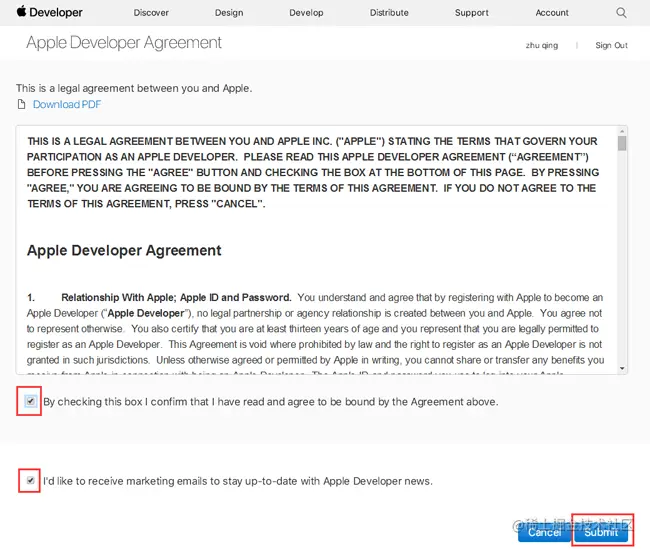 打钩同意协议,点击Submit提交。