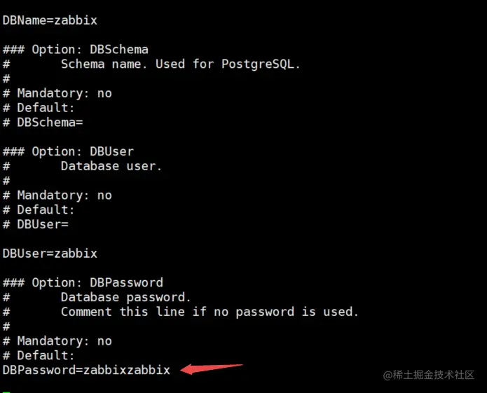 为Zabbix server配置数据库,编辑配置文件 /etc/zabbix/zabbix_server.conf\