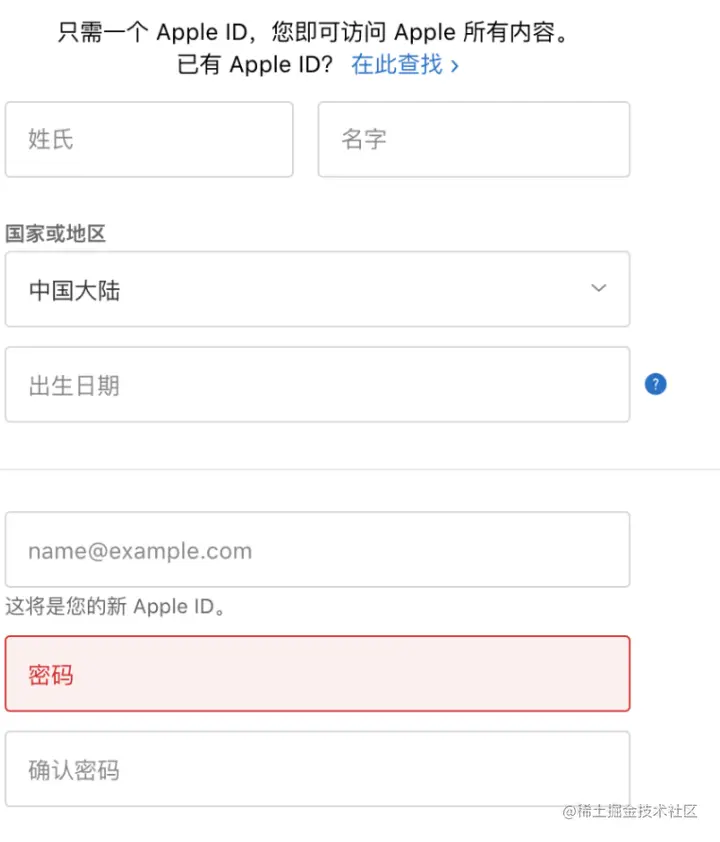 注册时填写的主要信息:姓氏、名字、国家、出生日期、邮箱、密码、密码保护问题、图片验证码,邮箱验证码。注意填写的内容必须为全英文,不得出现中文。