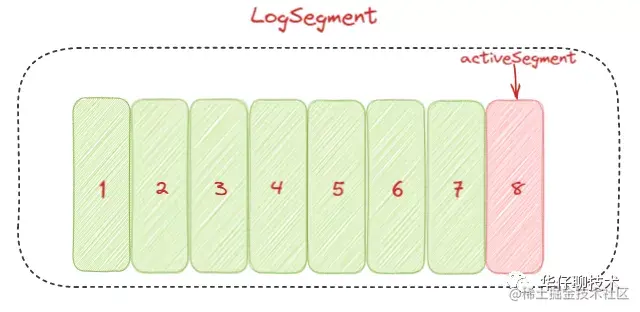 看上图我们知道首先向 Log 中写入消息是顺序写入的。但是只有最后一个 LogSegement 才能执行写入操作,之前的所有 LogSegement 都不能执行写入操作。为了更好理解这个概念,我们将最后一个 LogSegement 称为 "activeSegement",即表示当前活跃的日志分段。随着消息的不断写入,当 activeSegement 满足一定的条件时,就需要创建新的 activeSegement,之后再追加的消息会写入新的 activeSegement。