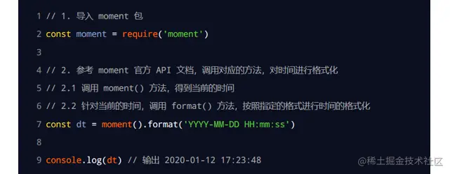 - 使用 require() 导入格式化时间的包