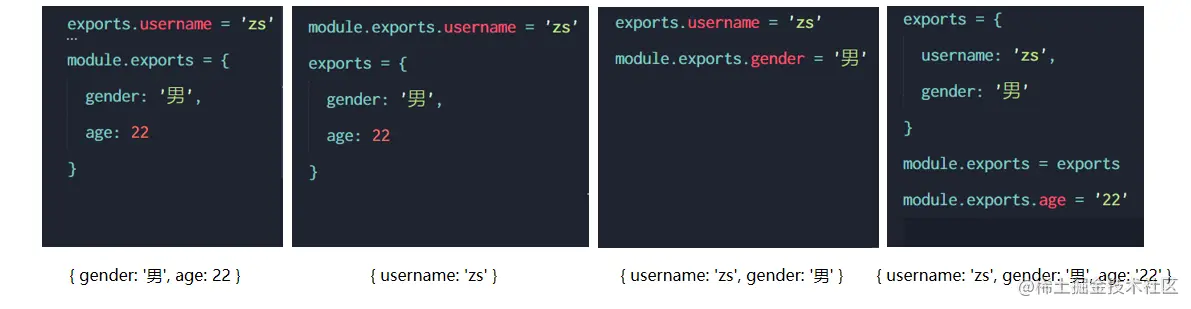 注意:为了防止混乱,建议大家不要在同一个模块中同时使用 exports 和 module.exports