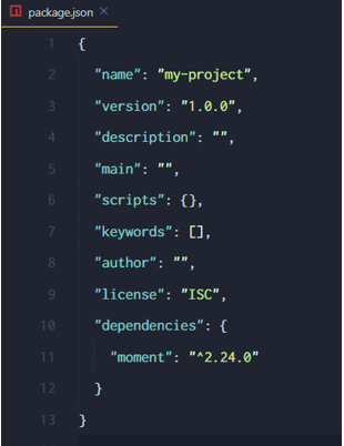 - 运行 npm install 命令安装包的时候,npm 包管理工具会自动把包的名称和版本号,记录到 package.json 中。