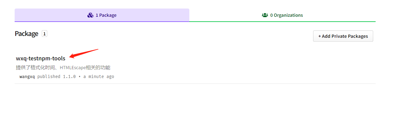 注意: npm unpublish 命令只能删除 72 小时以内发布的包 npm unpublish 删除的包,在 24 小时内不允许重复发布 发布包的时候要慎重,尽量不要往 npm 上发布没有意义的包!
