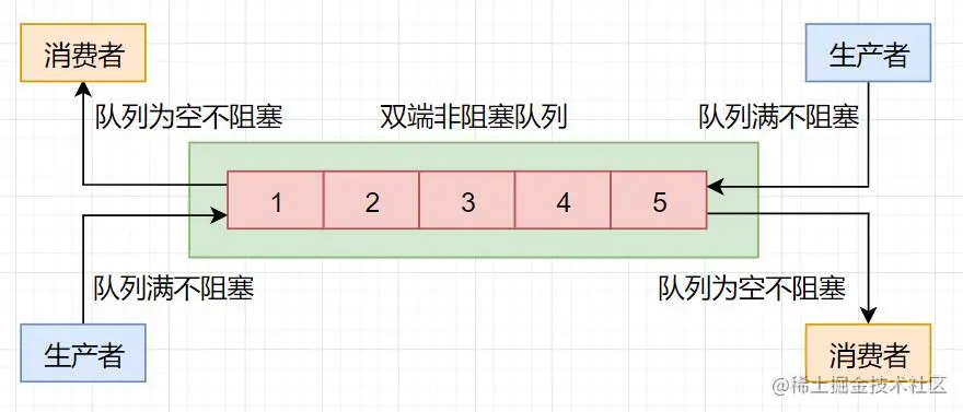 - 单端队列会使用Queue标识,例如ArrayBlockingQueue和LinkedBlockingQueue也是单端队列。