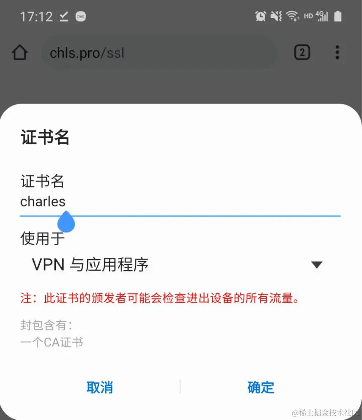 - 移动端配置证书:在移动端浏览器打开chls.pro/ssl,直接安装即可。