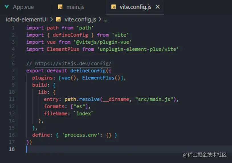 我们修改 vite.config.js 文件,新增 lib 相关配置,设置为 es 格式