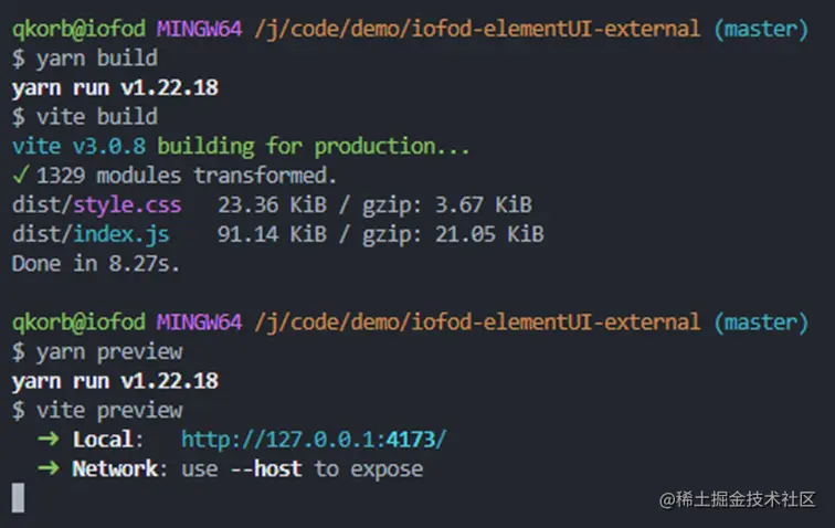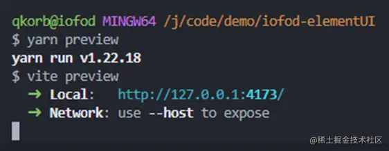 后续的步骤跟前文接近,我们继续执行构建命令,然后开启预览
