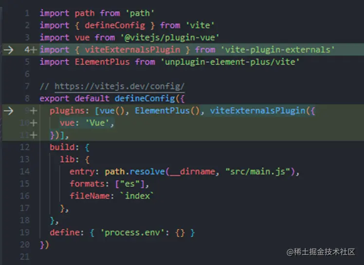 接着修改 vite 配置文件,把 Vue 作为外部依赖