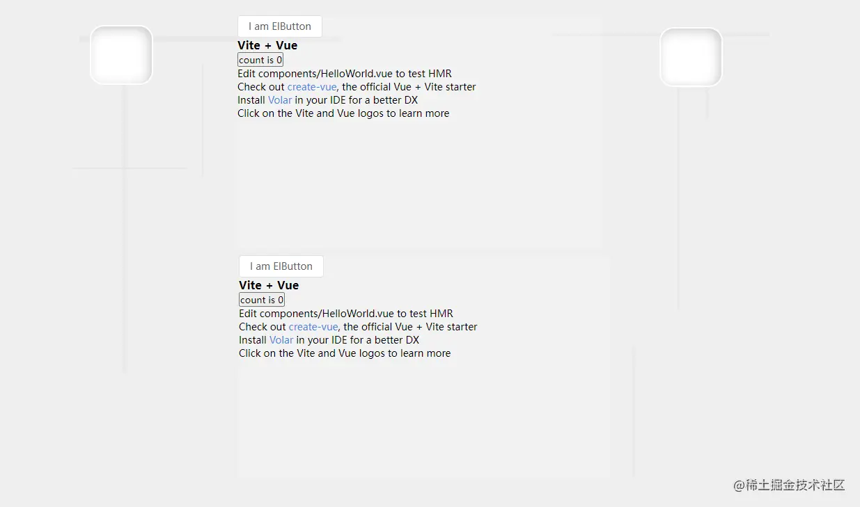 假如我们同一个应用需要导入多个外部组件,这些组件使用类似的框架,比如都使用 Vue 和 Element UI,那么我们可以把他们两者抽离出来作为公共依赖。我们以之前例子的基础上继续示范。