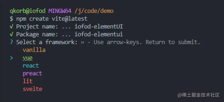 首先,打开你电脑本地的终端工具,初始化工程模板,我们使用 vite 作为构建工具: