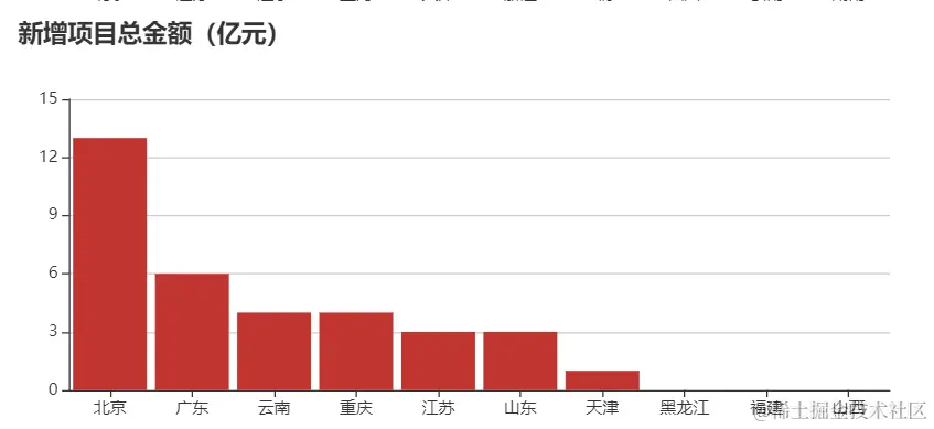本周新增项目金额地区TOP10:北京、广东、云南、重庆、江苏、山东、天津、黑龙江、福建、山西