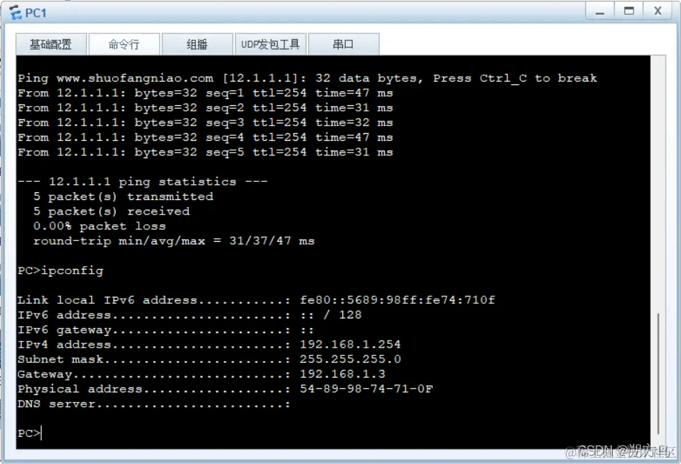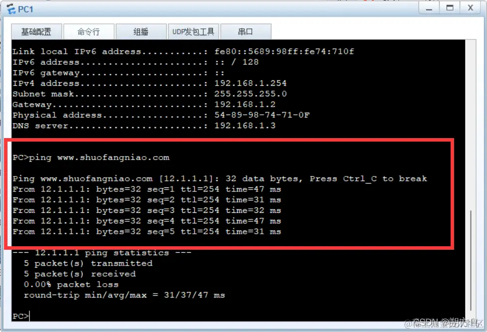 效果二:与www.shuofangniao.com通信时指向了12.1.1.1