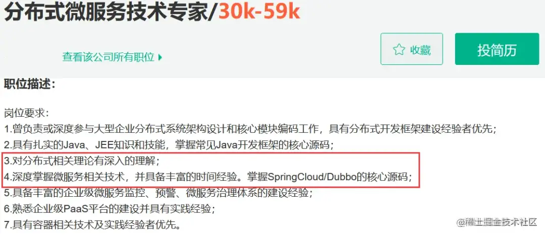 对于当下的互联网应用开发而言,分布式服务已经是一种标配的技术体系,各个公司都在使用 Dubbo、Spring Cloud 等分布式服务框架来构建大规模的分布式服务系统。因此,关于分布式服务相关技术的考查自然也成为面试过程中必不可少的一部分。在我的面试经历中,深刻体会到候选人的能力往往和他对技术的认知体系息息相关。在很多候选人的意识中,认为他们的主要工作就是对各种开源框架的应用,至于这些框架背后的设计思想和实现原理那是架构师要考虑的问题,跟他们没有关系,自然也就不会在日常开发过程中专门花时间去深入研究这些框架。但事实上 ,现在的技术面试,逃不掉分布式服务原理这一关,这点对于中高级技术岗位尤为明显。关于这一点,我们也可以来看一些招聘网站上的信息: