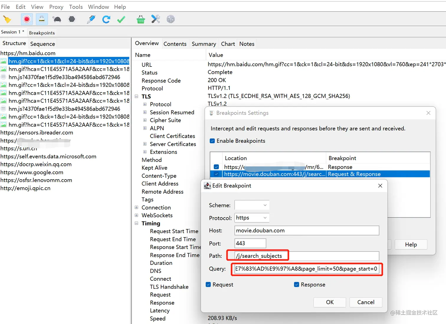 【备选项,点击“BreakPoints”后,要去查看工具栏-->Proxy-->SSL Proxying Settings... 】