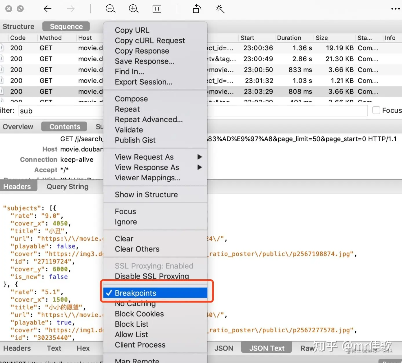 1、打开 charles,勾选 macOS Proxy,网页请求 movie.douban.com/