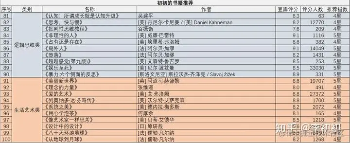 我今天必须给你们认真推荐我的书单,一部分是自己认真读过的觉得意义非凡、真的令人无法自拔的;一部分是知乎的关于好书的高赞分享,也是我今年将要阅读的。我总结了以下10个分类,为了不使类别之间差异太大,每个类别筛选了高质量的10本,合计100本。