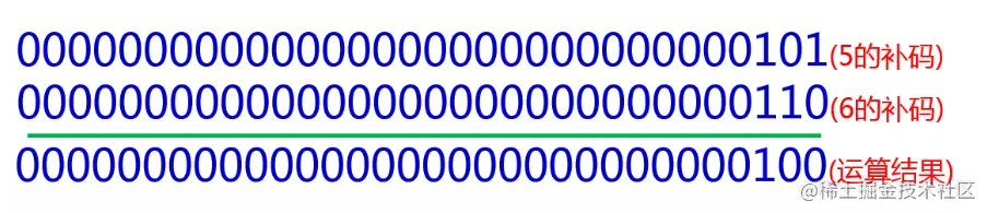 首先把5和6这两个数字转换为补码,之后还要把这两个数字按位对齐,然后一一把两个相应的二进制位上的数字进行按位与运算,运算得到的二进制串就是最终的结果。
