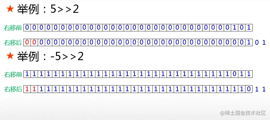 - 对于任何一个byte、short或者int类型的数据而言,带符号右移31位之后,得到的必然是0或者是-1。对于long类型的数据而言,带符号右移63位之后,得到的也必然是0或者是-1。