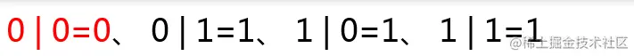 位或运算符为|,其运算规则是:参与运算的数字,低位对齐,高位不足的补零。如果对应的二进制位只要有一个为 1,那么结果就为 1;如果对应的二进制位都为 0,结果才为 0。