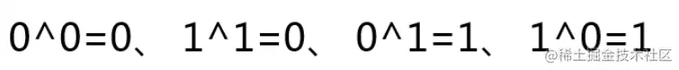 位异或运算符为^,其运算规则是:参与运算的数字,低位对齐,高位不足的补零,如果对应的二进制位相同(同时为 0 或同时为 1)时,结果为 0;如果对应的二进制位不相同,结果则为 1。