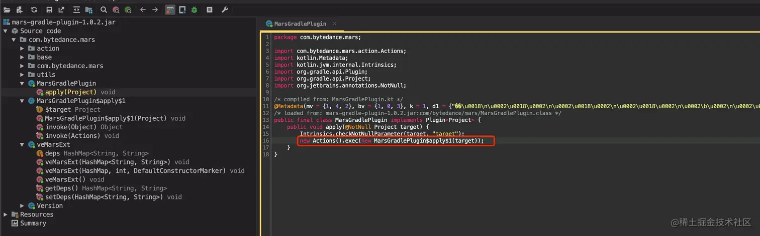 最先想到的一种简单且不失风度的解决方案就是这个了,与火山引擎的 mars-gradle-plugin 不同的是,这个方案的插件需要在 buildSrc 的 build.gradle(.kts) 被 apply,然后: