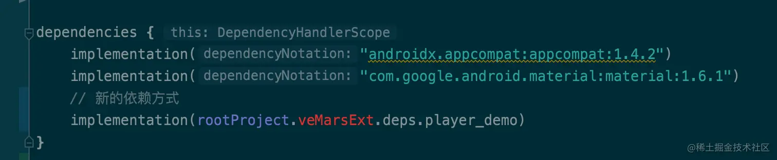 okk,到这里,就瞬间明白为啥 implementation rootProject.veMarsExt.deps.player_demo 在 groovy 里能 work 了,原因就是已经给 rootProject 创建了一个名为 veMarsExt 的 extension