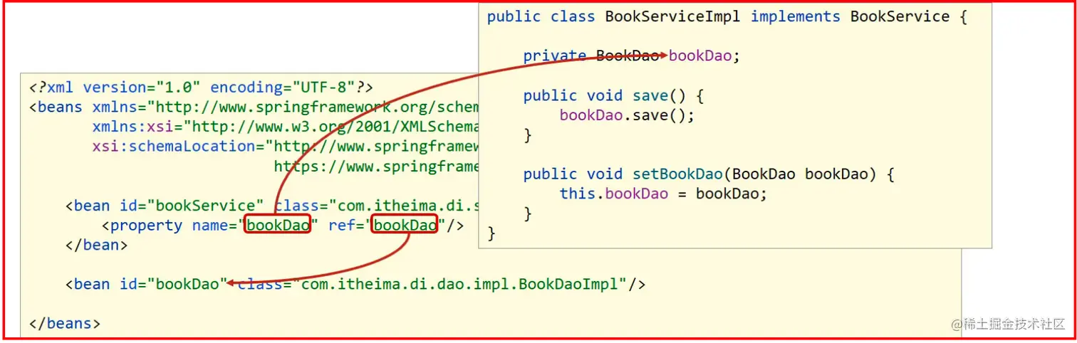 <property name="bookDao" ref="bookDao"/>