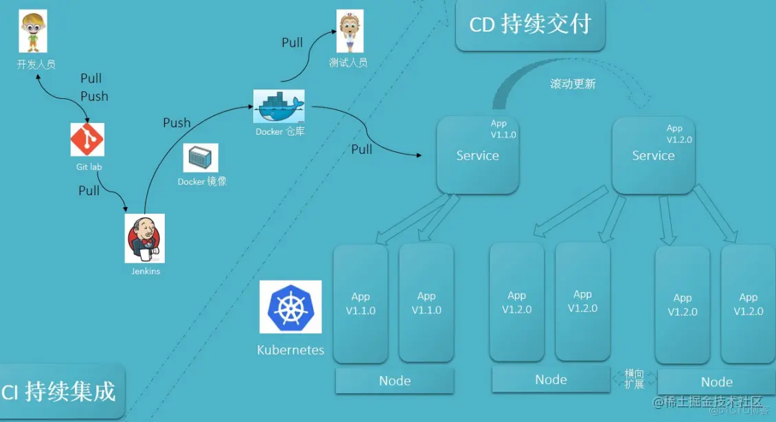 完成 CI 中构建及单元测试和集成测试的自动化流程后,持续交付可自动将已验证的代码发布到存储库。而持续交付的目标是为了能够随时拥有一个可随时部署到生产环境的代码库。
