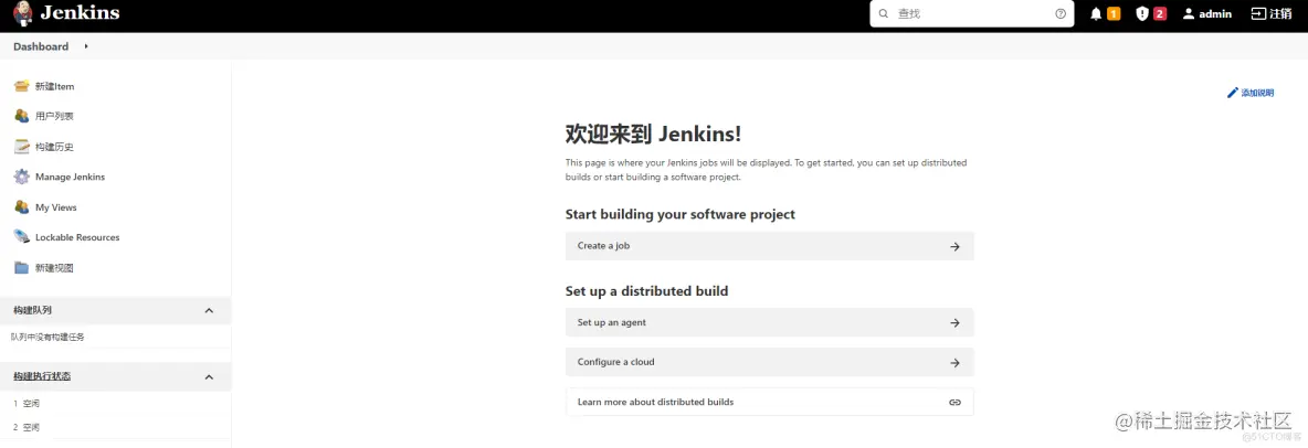 执行如下命令即可将启动一个docker容器,随即Jenkins就会进行启动
