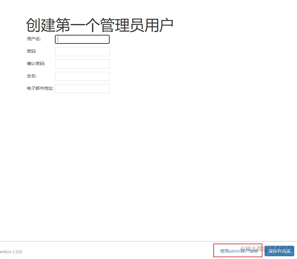 进入到当前页面可以创建管理员账号,当前也可以不创建直接通过admin账号继续操作,这里随意