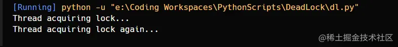 print('Thread acquiring lock again...')