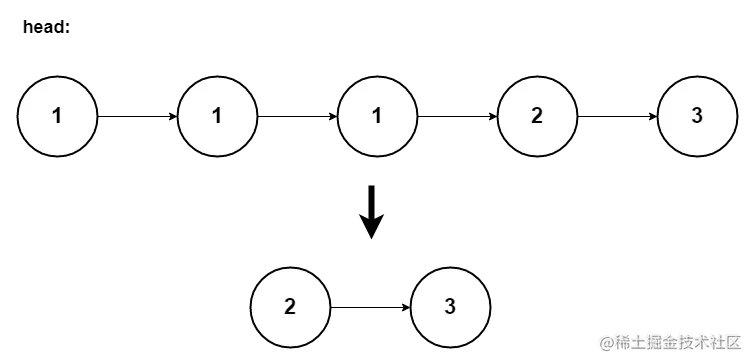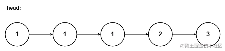 例如题目中给出的示例 :head = [1, 1, 1, 2, 3]