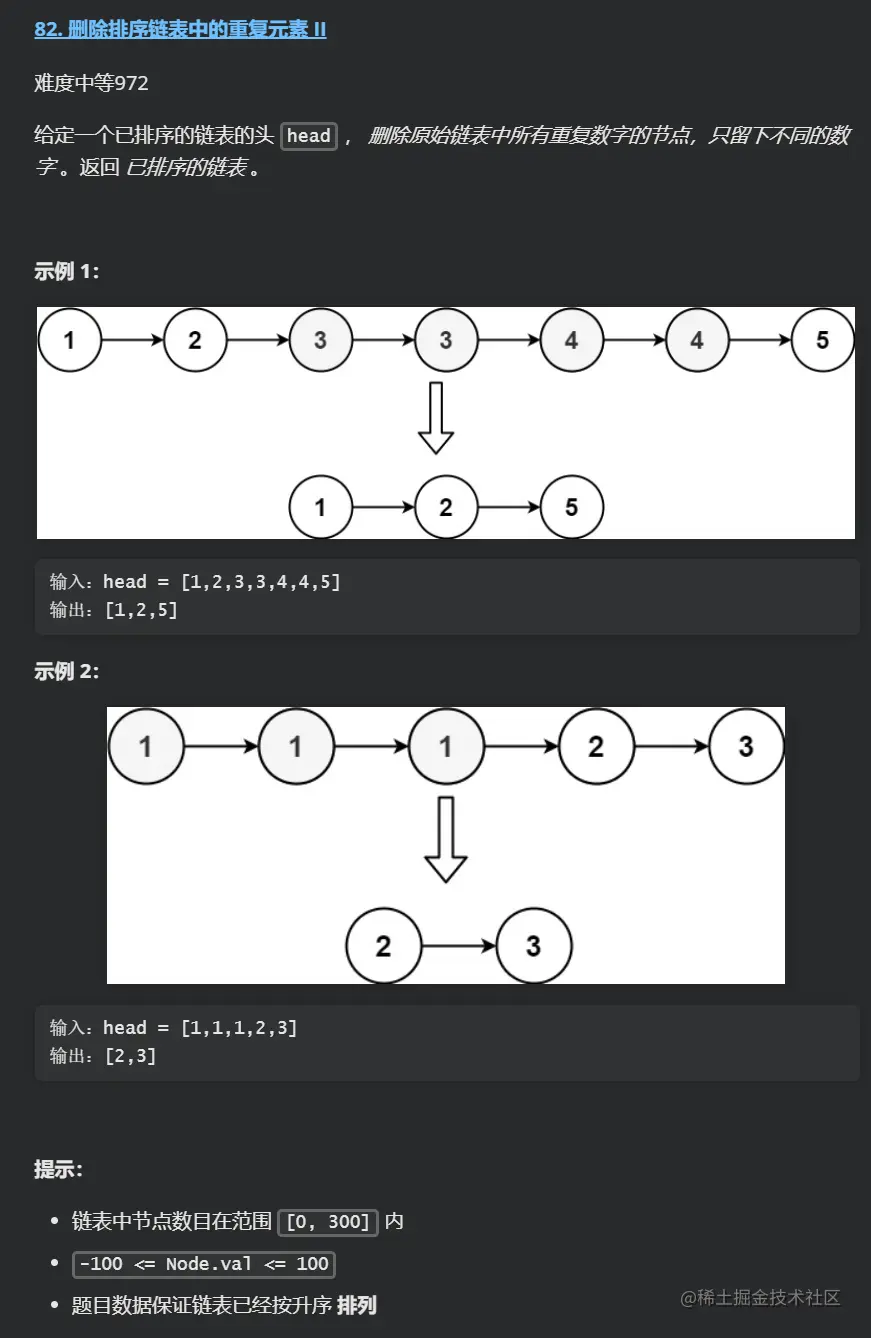 本次刷题日记的第 105 篇,力扣题为:82. 删除排序链表中的重复元素 II