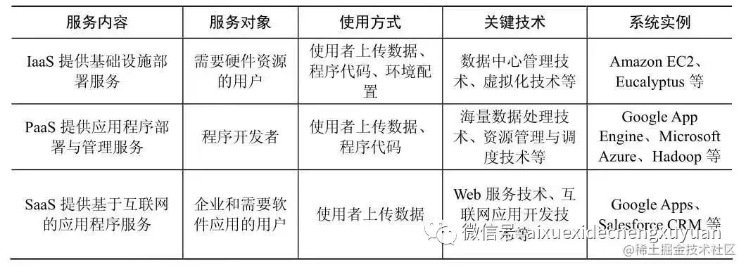 云计算核心服务通常可以分为3个子层:基础设施即服务层(Infrastructure as a Service,IaaS)、平台即服务层(Platform as a Service,PaaS)、软件即服务层(Software as a Service,SaaS)。
