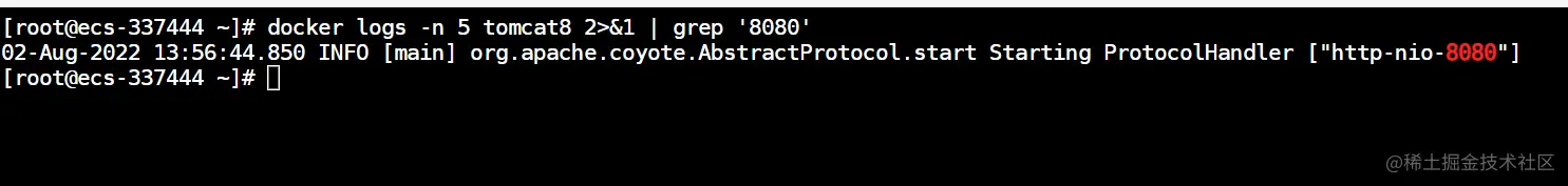 查询tomcat8的日志内容包含error取最新5行,注意需要使用2>&1进行重定向