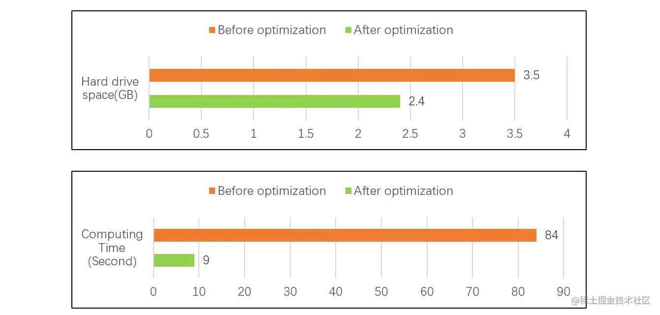 在下面这个测试中,SPL采用数据类型优化和有序压缩列存后,数据存储量减少了31%,而计算性能提高了9倍多。测试结果见下图: