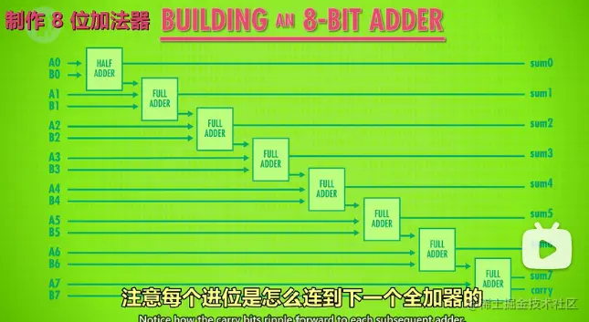 因此解决方案就是加更多全加器,可以操作16或32位数字,让溢出更难发生,但代价是更多的逻辑门,而且每个进位的运算都需要一点时间,虽然很快但是现在这个时代是每秒几十亿次计算,再小的延时都会被放大。