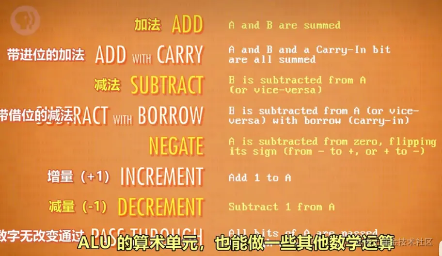 ALU还支持其他数学运算,一般是下面的八种.和加法器一样也是通过逻辑门构成