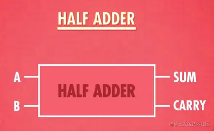 两个输入A B,一个输出为AB的和。这三个值都是单个比特(0或1)