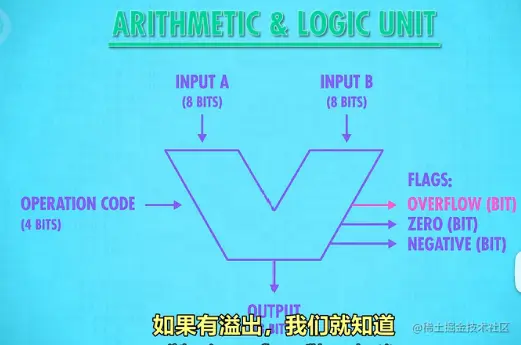 右边的FLAGS是1位(1Bit)代表的是某种特定状态(下面这三种状态是最常用的,高级的ALU会有更多FLAGS)