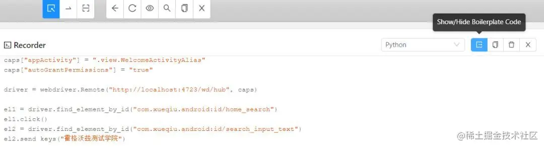 对于 Appium 的初学者,可以通过录制功能,了解编写用例的时候需要使用哪些 API,有哪些编写规范等,可以作为一个很好的参考。
