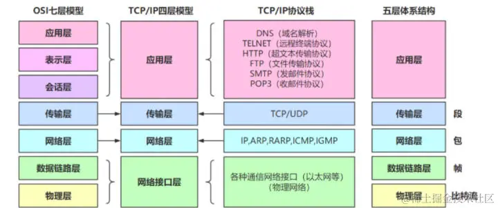 在了解具体的协议之前,需要先了解 OSI 七层模型、TCP/IP 四层模型、五层体系结构这三种不同的网络模型。