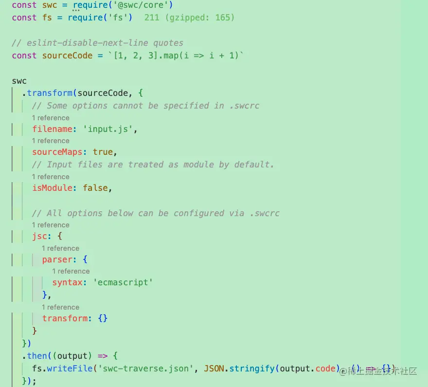 与babel类似,swc/core也暴露一些api给开发者,可以自定义转换代码的插件。 但官网提到目前有些性能问题。